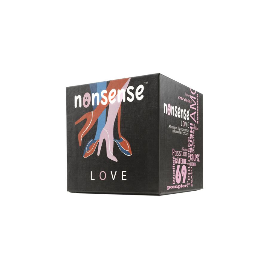 Het spel Nonsense Love bevat tweetalige kaarten (Nederlands/Frans). Er zijn 55 woordkaarten, 55 situatiekaarten, 6 scorekaarten, 6 pionnen en een zandloper.