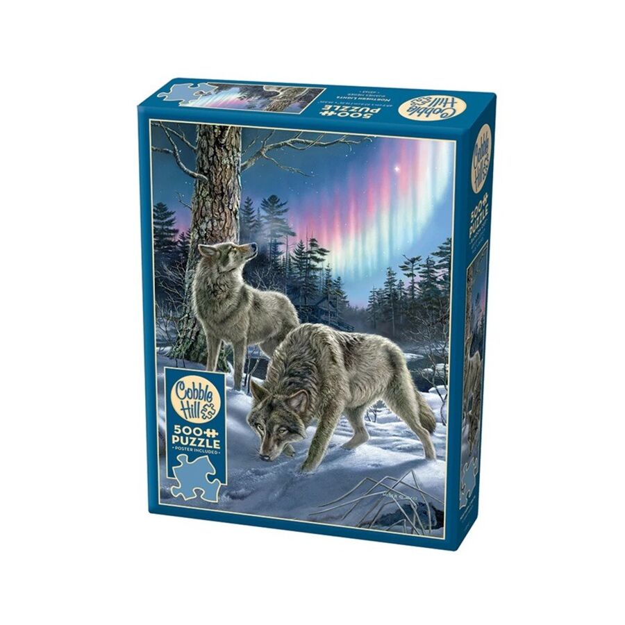 Deze 500 stukjes puzzel toont prachtig natuurwerk van kunstenaar James Meger, wiens passie voor wilde dieren voortleeft in zijn tijdloze schilderijen. De sfeer van het winterlandschap en de mysterieuze gloed van de aurora maken dit een indrukwekkende puzzel voor liefhebbers van natuur en wildlife.