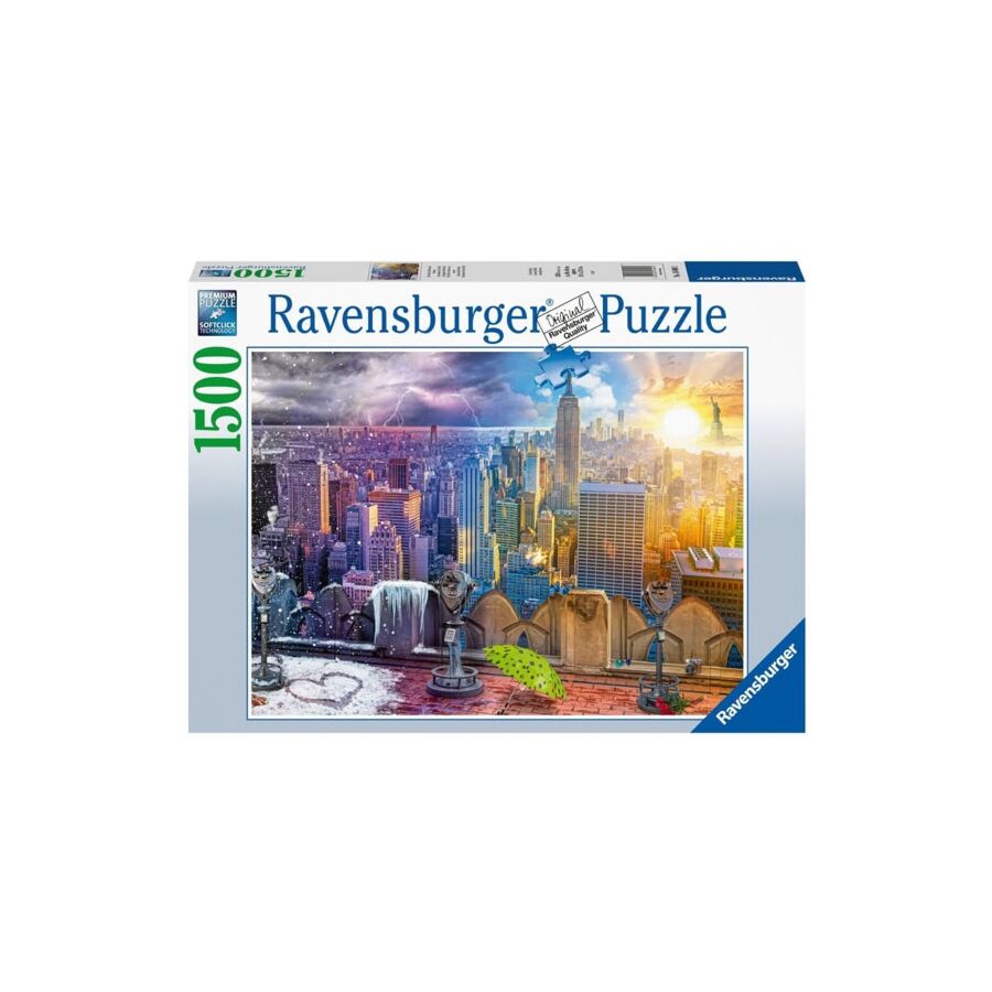 NY 's winters en 's zomers is een puzzel van het merk Ravenburger. De puzzel bestaat uit 1500 puzzelstukken en meet 84 x 60 cm.