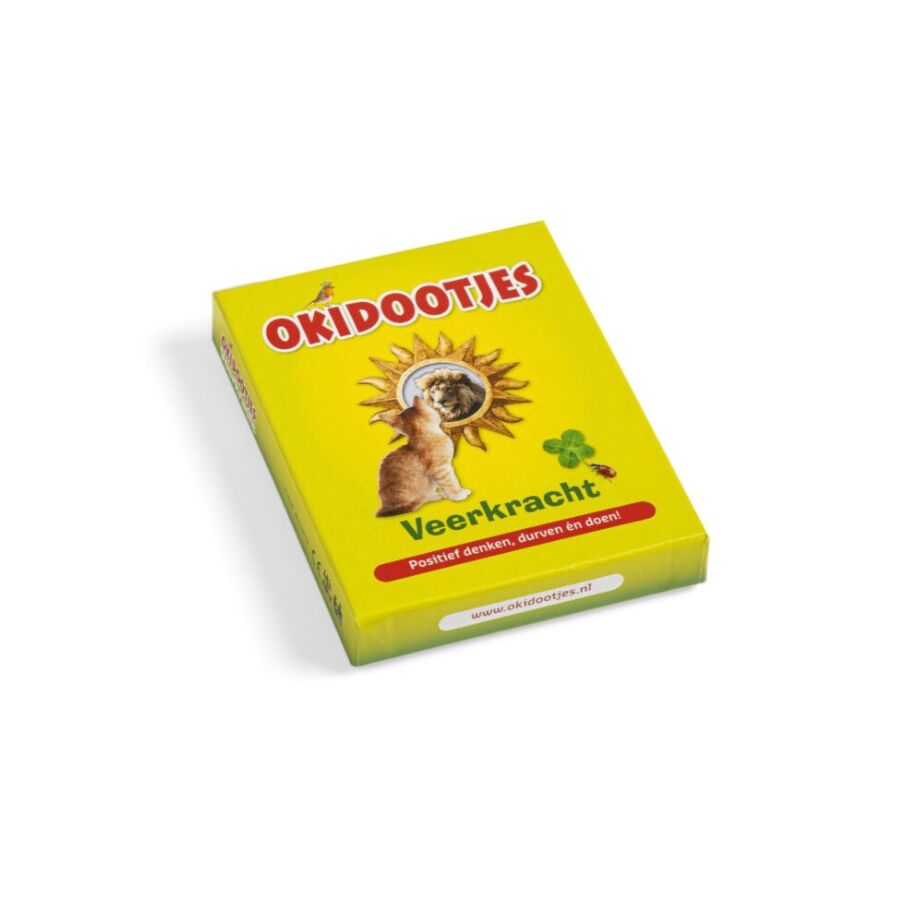 Okidootjes Veerkracht is een bundeling van kaarten met sterke gedachten. Deze gedachten helpen om de veerkracht te vergroten en om stevig in je schoenen te staan. Spelenderwijs leer je hoe je een positieve focus ontwikkelt, hoe je kan omgaan met verandering en tegenslag, hoe je oplossingsgericht denkt en hoe je zelfvertrouwen krijgt.