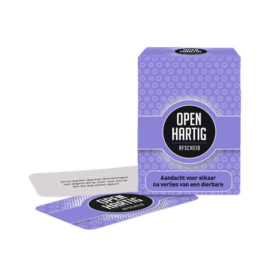 Openhartig Afscheid nodigt uit om met elkaar te delen wat het afscheid betekent voor ieder van jullie. Neem een kaartje uit het doosje en start het gesprek naar aanleiding van vragen zoals bijvoorbeeld: