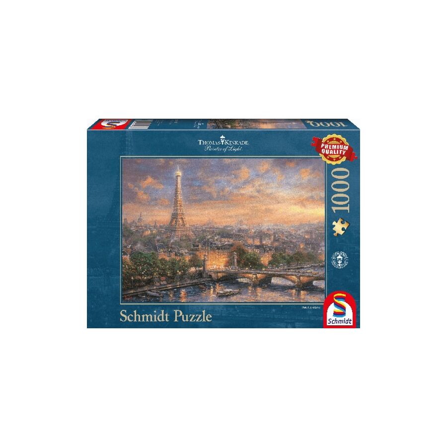 Dit is een puzzel met afbeelding van Parijs, gemaakt door de kunstenaar Thomas Kinkade, painter of light. Parijs, Stad van de Liefde bevat 1000 puzzelstukken.