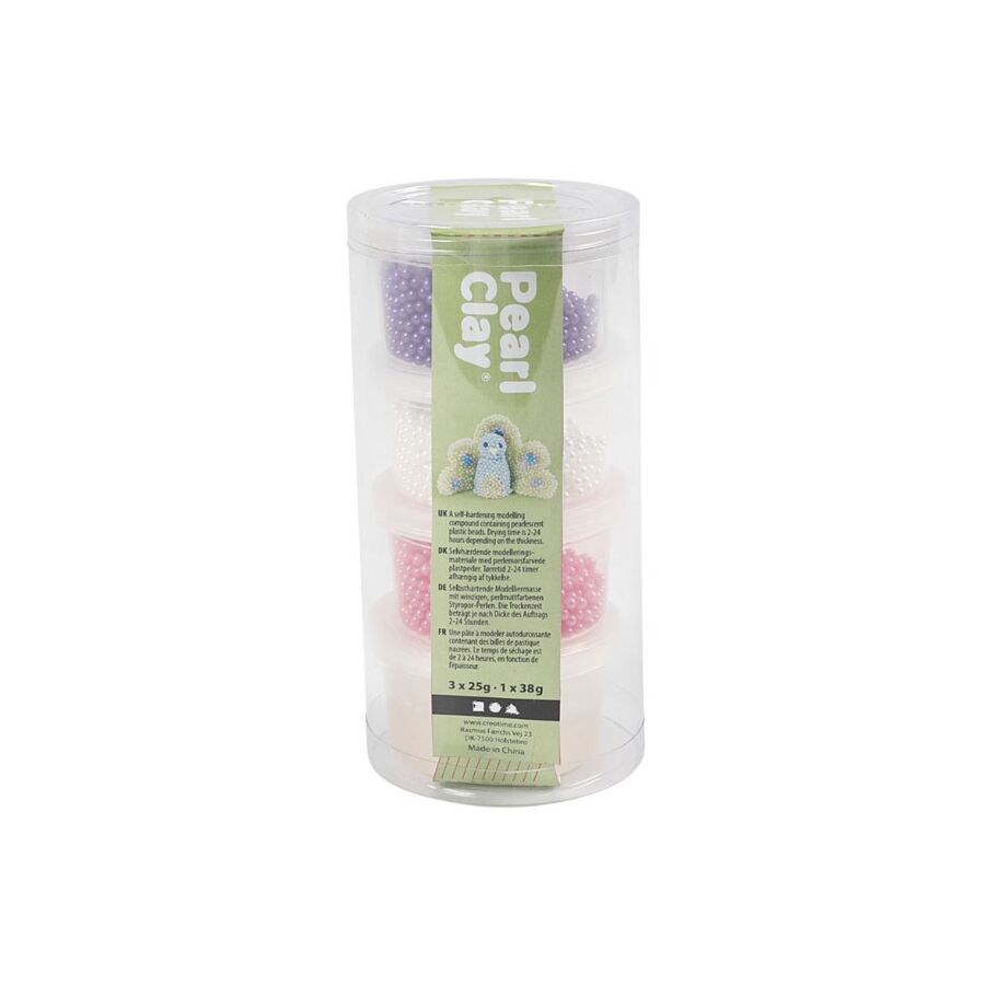 Pearl Clay is een boetseermateriaal met parelachtige gekleurde kralen. Je kan Pearl Clay gebruiken om hobbymaterialen mee te versieren zoals terracotta, styropor, textiel en papier-maché. Pearl Clay vlekt niet en droogt gewoon aan de lucht.