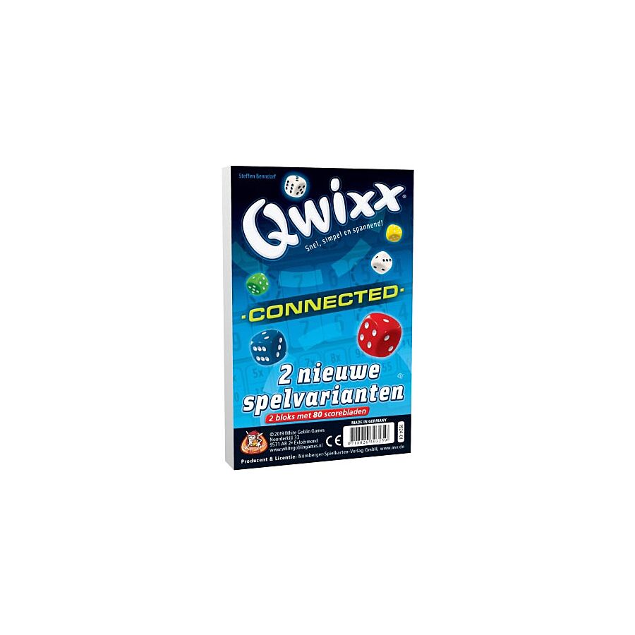 Qwixx Connected bestaat uit twee bloks van 80 scorebladen (160 blaadjes in totaal). De scorebloks bevatten 5 verschillende blaadjes zodat de bonusvelden bij iedere speler op een andere plaats staan.