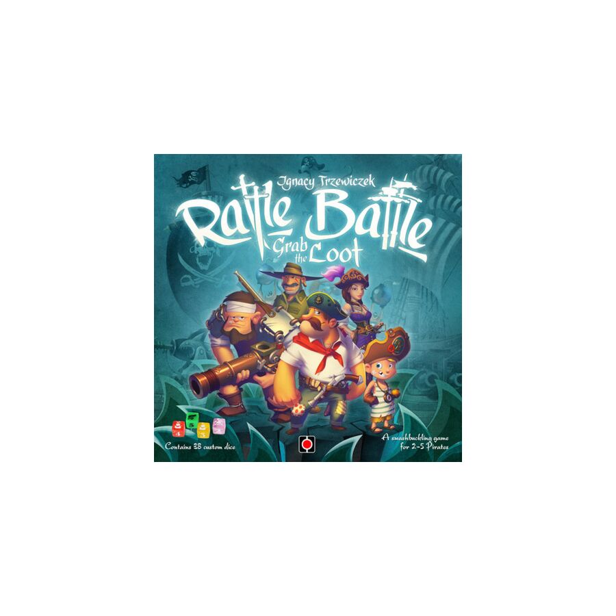 In het spel Rattle, Battle, Grab the Loot ga je lekker op plundertocht! Zowel de symbolen als de positie van de dobbelsten zijn van belang bij het bepalen van de uitkomst van gevechten. Met de winst die ze maken, kunnen de spelers hun schip verbeteren of meer personeel aanwerven. Ze kunnen ook goederen aan de piratenkoning geven.
