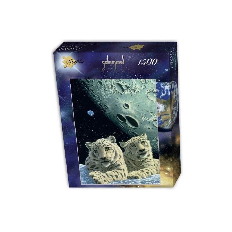 De afbeelding van deze puzzel bevat twee sneeuwluipaarden. Het is een kunstwerk van Schim Schimmel.