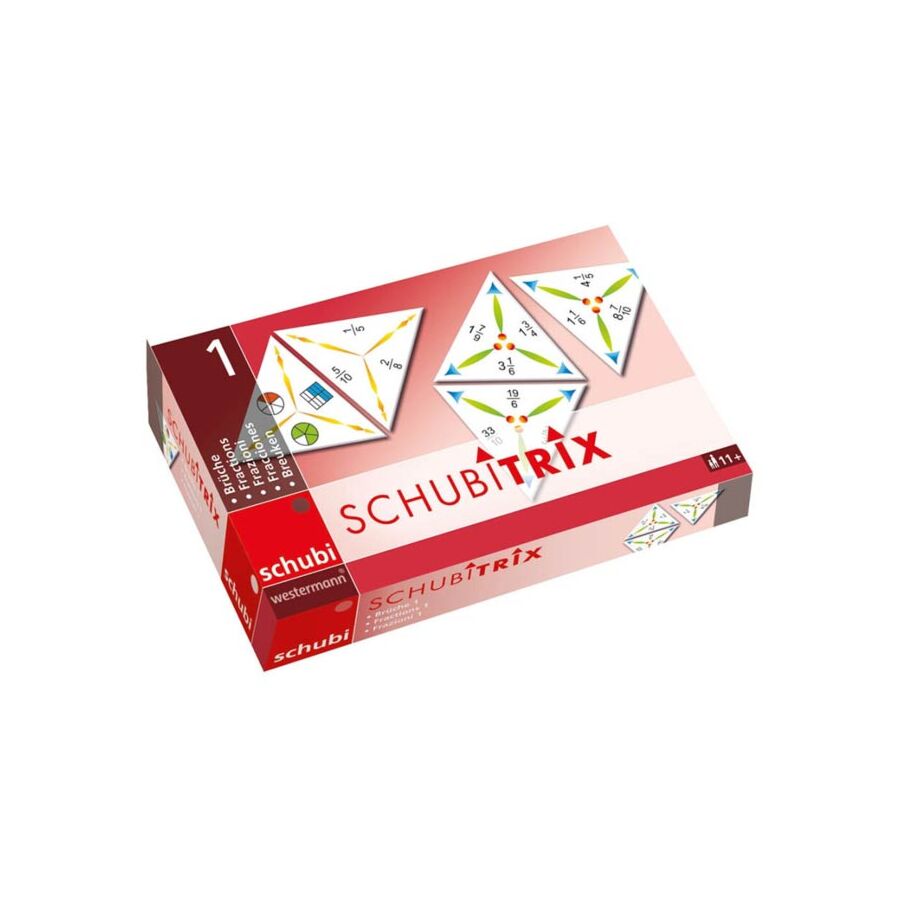 Schubitrix is een leerzaam legspel dat werkt volgens de regels van een domino spel, maar bij Schubitrix heb je drie zijden die moeten kloppen. Een zijde klopt wanneer de breuken en verhoudingen volledig hetzelfde zijn.
