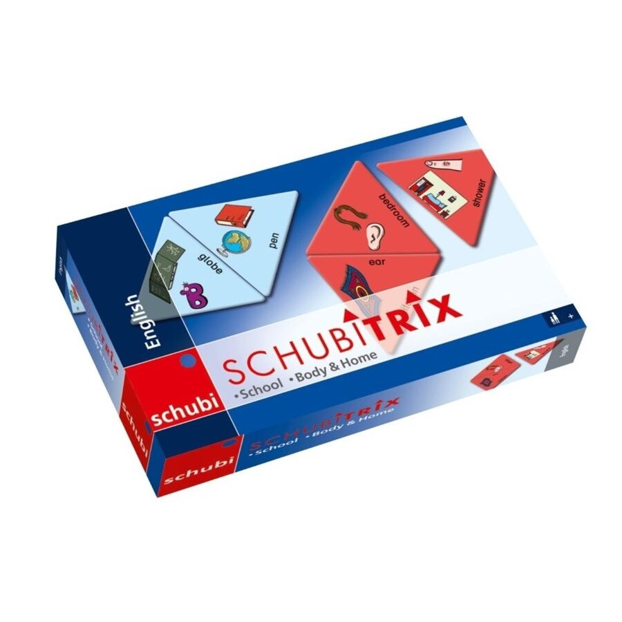 Schubitrix is een leerzaam legspel dat werkt volgens de regels van een domino spel. Een zijde klopt wanneer je de correcte afbeelding bij een Engels woord legt (of omgekeerd).