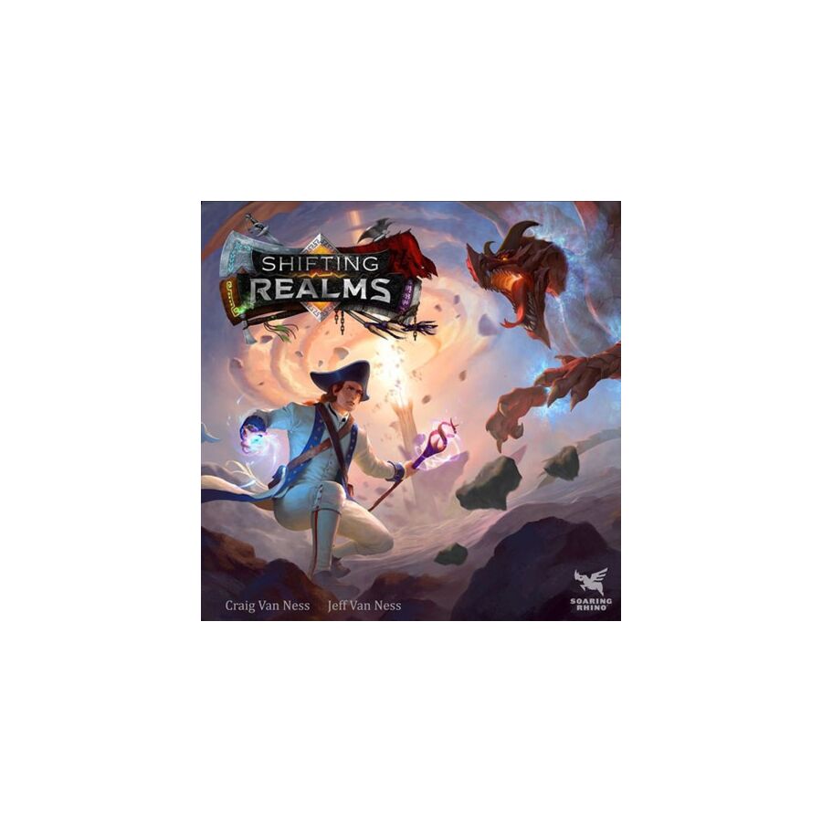 Shifting Realms is a game of colliding worlds that introduces the Realm Engine. Players must balance game play over three randomly selected worlds each with its own end condition. Once two out of the three worlds’ end conditions are met the game ends.