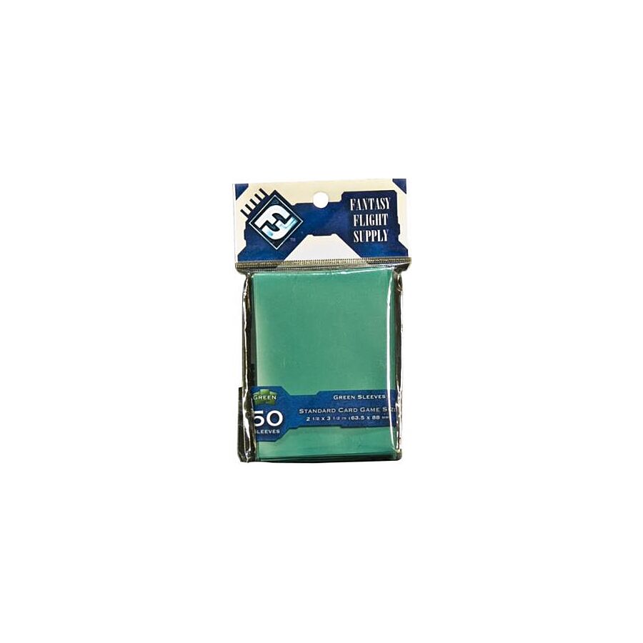 Groene Sleeves van het merk Fantasy Flight voor standaard kaarten (63,5x88 mm). Een pakje bevat 50 sleeves.