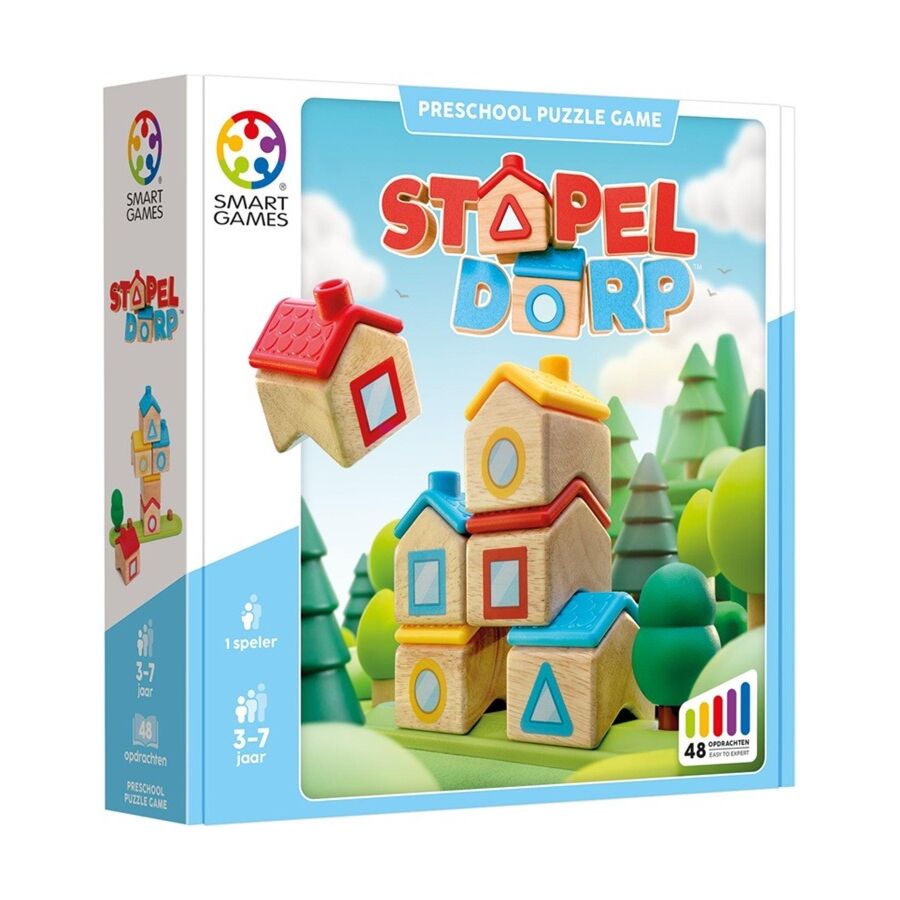 Welkom in het vrolijke Stapeldorp, waar kleine bouwmeesters hun eigen kleurrijke dorp tot leven brengen! Met stevige houten huisjes stapel je van onder naar boven en ontdek je hoe elk huisje perfect op zijn plek past.