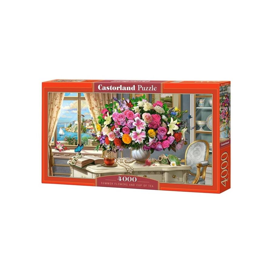 De panoramapuzzel Summer Flowers and Cup of Tea bestaat uit 4000 stukjes.