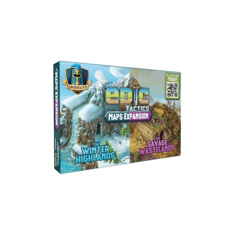 Tiny Epic Tactics Maps Expansion is a set of box covers and scrolls. It includes everything needed to convert the 6 Evergreen Woodlands boxes into 2 different settings: the Winter Highlands and the Savage Wastelands.