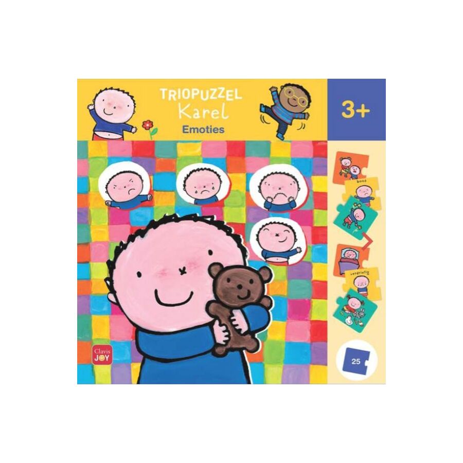 Dit zijn vijf triopuzzels voor kinderen vanaf 3 jaar. Ontdek de wereld van de emoties samen met Karel en zijn vriendjes. Waar word je blij of verdrietig van? En wat kan jou helpen bij die emotie? Kies tussen de verschillende mogelijkheden en zoek het puzzelstukje dat voor jou het beste past. Want gevoelens zijn voor iedereen anders.