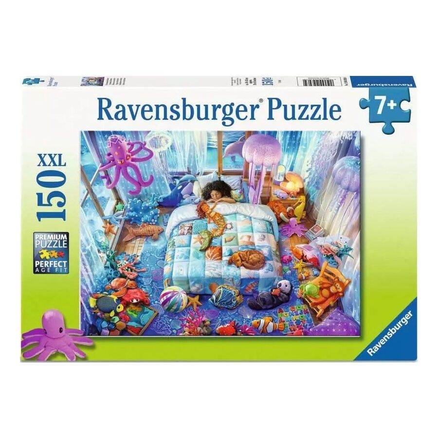 Stap binnen in een betoverende droomwereld met de “Undersea Dreams” puzzel van Ravensburger. In deze unieke en fantasierijke scène ligt een meisje heerlijk te slapen, omringd door haar liefde voor de zee.