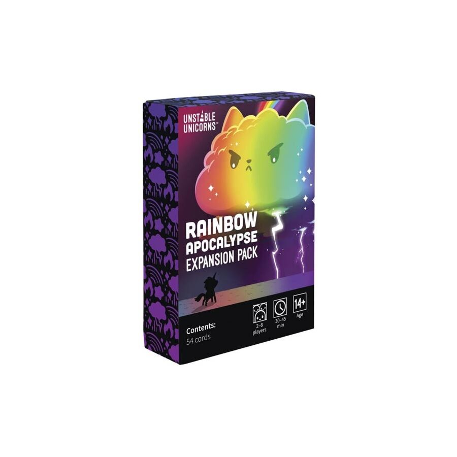 The Unstable Unicorns Rainbow Apocalypse expansion contains 54 cards. It are 27 adorably destructive cards and 27 cards that are full of apocalyptic mayhem.