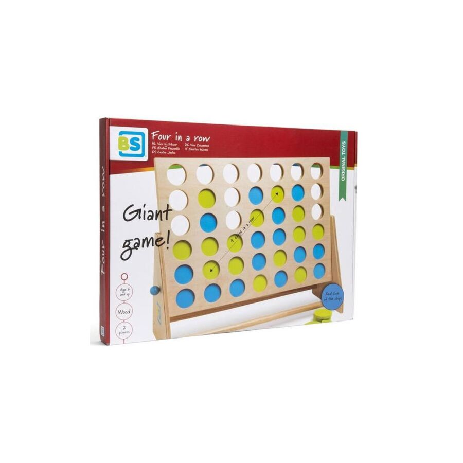 Dit is een groot Vier op een rij spel. De spelers gooien om de beurt een fiche van hun kleur in het frame. Wie als eerste vier op een rij maakt, wint het spel. Dit kan zowel horizontaal als verticaal zijn.