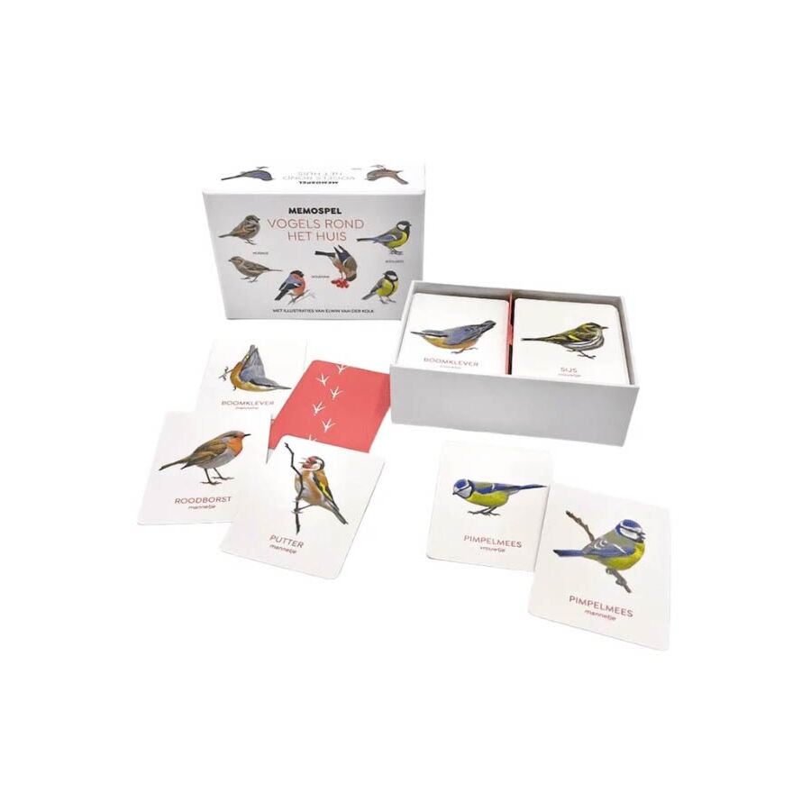 Vogels rond het huis Memospel is een leuk en leerzaam spel. Bevat een begeleidend boekje met informatie over het uiterlijk, het gedrag en het leefgebied van de vogels.