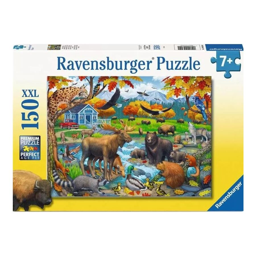 Van bevers en herten tot eenden, bizons en zelfs imposante elanden – samen met hun jongen vormen ze een levendig en hartverwarmend tafereel. De herfstkleuren en speelse details maken deze puzzel extra leuk om steeds opnieuw te ontdekken.