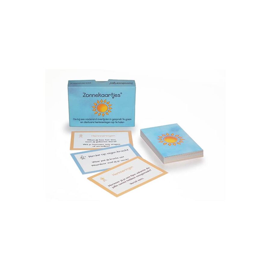 Zonnekaartjes kun je gebruiken als je te horen hebt gekregen dat een dierbare binnenkort zal sterven. Het zijn kaartjes om in gesprek te gaan en dierbare herinneringen op te halen. Dit kan alleen, of samen met familie en vrienden.